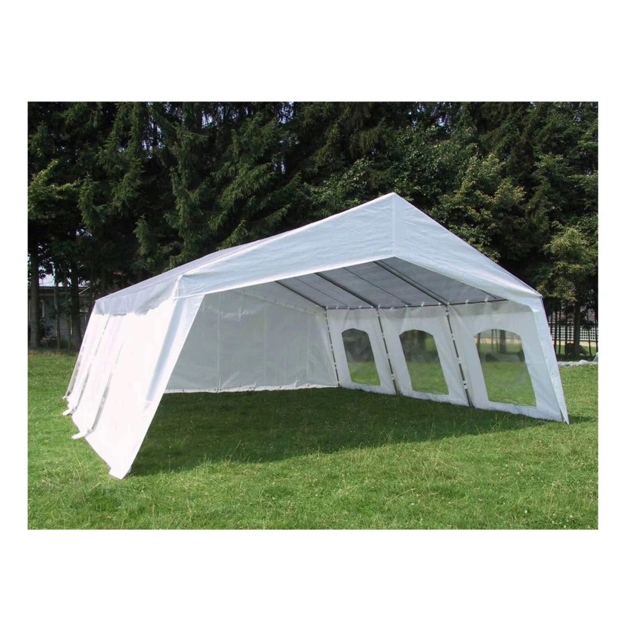 Das Tortuga Winnipeg 800 ist das ultimative Partyzelt. Schon der Aufbau gestaltet sich unkompliziert. Das Alu-Gestänge erleichtert den Transport und wurde hochgradig verdichtet und kalibriert, damit es langfrisitig für Stabilität sorgt. Das PE-Bändchengewebe ist ebenso wetterbeständig, wasserabweisend und reißfeste. Von den acht Seitenteilen sind vier mit Fenstern ausgestattet. Sie sind wegen der Klettverschlüsse beliebig kombinierbar und können auch komplett herausgenommen werden. Die komfortable Mittelhöhe von 300 cm sorgt dafür, dass den Partygästen nicht die Decke auf den Kopf fällt. Die großzügige Grundfläche von 800 x 590 cm bietet reichlich Platz zum Tanzen. Das Tortuga Winnipeg 800 Partyzelt rüstet Sie deshalb zuverlässig für die feierlichen Tage und Nächte.