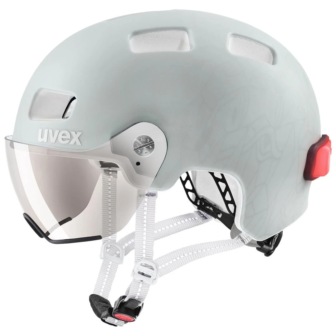 Der stylische Uvex rush visor Radhelm ist ein sportlicher City-Helm mit integriertem Visier, der dir einen angenehmen Tragekomfort und herausragende Sicherheit gewährt. Er ist angenehm leicht, hat eine gute Belüftung und kann durch das 3D IAS-Größenverstellsystem ideal in Höhe und Weite an deine Kopfform angepasst werden. Zu den weiteren Ausstattungsmerkmalen des rush visor gehören unter anderem ein tiefgeschnittener Nackenbereich, reflektierende Gurtbänder mit Logos und eine Plug-In LED. Das Allwetter-Visier mit erweitertem Sichtfeld in litemirror silver (Cat.1) schützt die Augen im Straßenverkehr optimal vor Sonne, Wind und anderen Umwelteinflüssen.