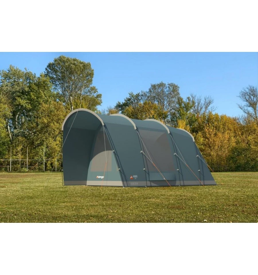 Der Fokus bei der Entwicklung des Vango Harris 500 liegt auf der Belüftung, was es zum perfekten Zelt für den Sommerurlaub mit der Familie macht. Die große Fronttür mit einem zweigeteilten Moskitonetz lässt sich komplett zur Seite aufrollen, um das Zelt komplett zu öffnen. Dadurch schaffst du auch an heißen Tagen ein angenehmes Zeltklima. Außerdem befinden sich im Wohnbereich zwei große Belüftungsöffnung mit Moskitonetz-Einsatz. Das Außenzelt besteht aus dem eigens von Vango entwickelten Sentinel Gewebe, das in Sachen Gewicht und Packmaß überzeugt. Es ist sehr strapazierfähig und langlebig und hat eine Wassersäule von 3.000 mm. Der Boden des Zeltes besteht aus Polyäthylen (PE).