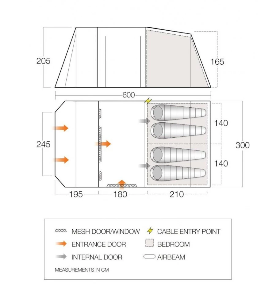 In den eigentlichen Wohnraum kommt ihr durch einen Eingang, den ihr komplett wegrollen könnt. So könnt ihr einen Panorama-Blick genießen. Die Tür ist mit einem Moskitonetz ausgestattet, so dass ihr das Zelt auch nachts zum Belüften öffnen könnt und keine Angst vor Mücken haben zu müssen. Wenn ihr den Vorraum als Wohnbereich nutzt und mit Möbeln einrichtet, dann könnt ihr das Lismore TC 450 ganz bequem durch den separaten Seiteneingang betreten oder verlassen.