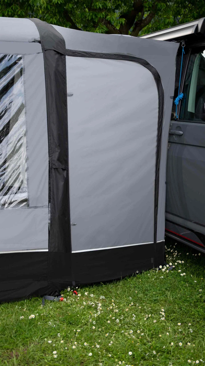 Die Westfield Hydra Schleuse 1 ist die passende Schleuse zu deinem Hydra Busvorzelt. Es hat eine Anschlusshöhe von 180 – 210 cm. Die Anbringung an dein Zelt erfolgt ganz einfach mittels Reißverschluss. Die Hydra Schleuse 1 hat eine Tiefe von 90 cm und besitzt zwei praktische Türen, sodass du schnell an deinen Wagen oder ins Zelt gelangst.
