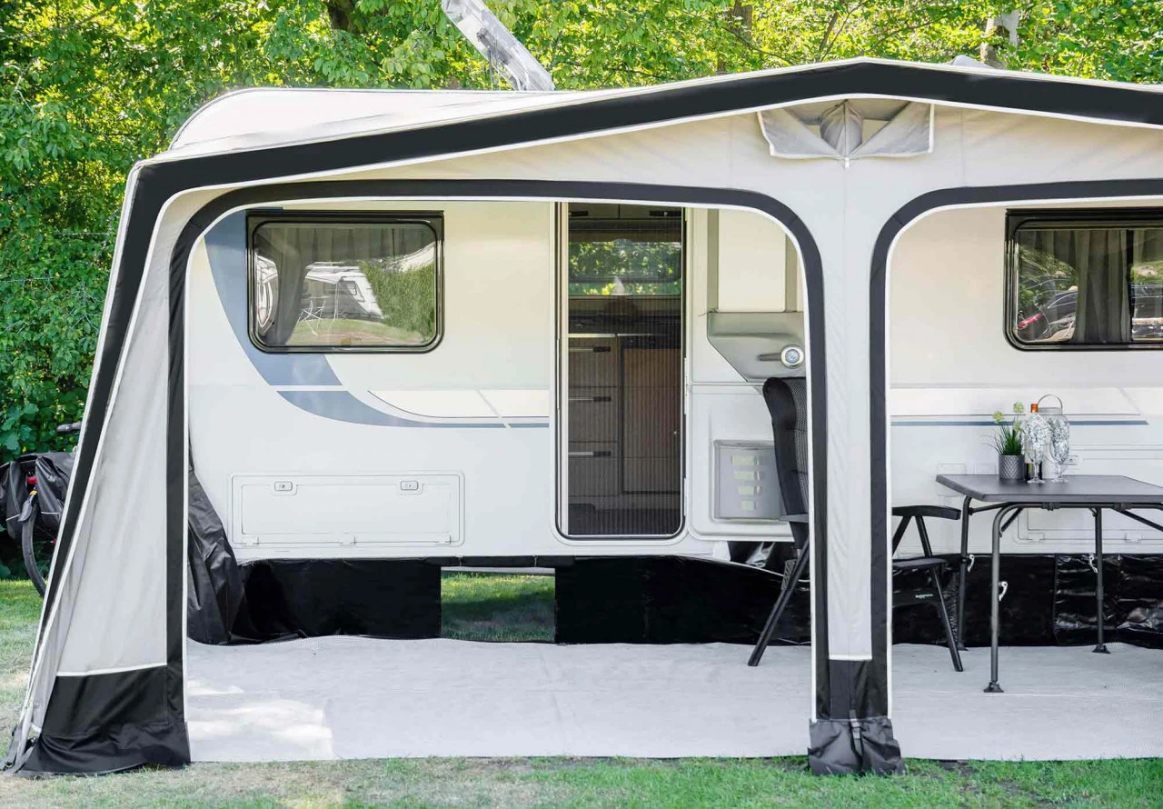 Das Westfield Pluto Wohnwagenvorzelt ist dein idealer Begleiter für deine nächste Reise, da es durch die AAS-Lufttechnik nur an einem Punkt aufgepumpt wird und das in wenigen Minuten. Es besteht außerdem aus dem reißfesten und strapazierfähigen HydroTech® CottonTouch-Material, welches speziell für Caravan und Reisemobile entwickelt wurde. Dieses Polyestergewebe ist besonders UV-beständig. Des Weiteren verleiht diese Beschichtung dem Zelt einen fühlbaren Baumwoll-Charakter. Durch den Volleinzug wird es ganz einfach in die Kederschiene eingezogen. Somit ist dir eine perfekte Abdichtung an den Seiten deines Caravans garantiert. Das Pluto Wohnwagenvorzelt besticht vor allem durch sein großzügiges Platzangebot im Inneren. Zwei Seitenwände sind mit einer getönten Fensterfolie ausgestattet, die zusätzlich auch über ein Moskitonetz verfügen und somit Insekten fernhalten. Die beiden Wände der Frontseite sind mit getönten Panoramafenstern, einer Tür und einem Moskitonetz versehen. An warmen Tagen besteht die Möglichkeit die Seitenwände des Zeltes zu entfernen und wie unter einem Pavillon im Grünen zu sitzen und die Natur zu genießen. Für ein gutes Zeltklima sorgt die dauerhafte Hochentlüftung, sodass in deinem Zelt ein angenehmes Klima herrscht.