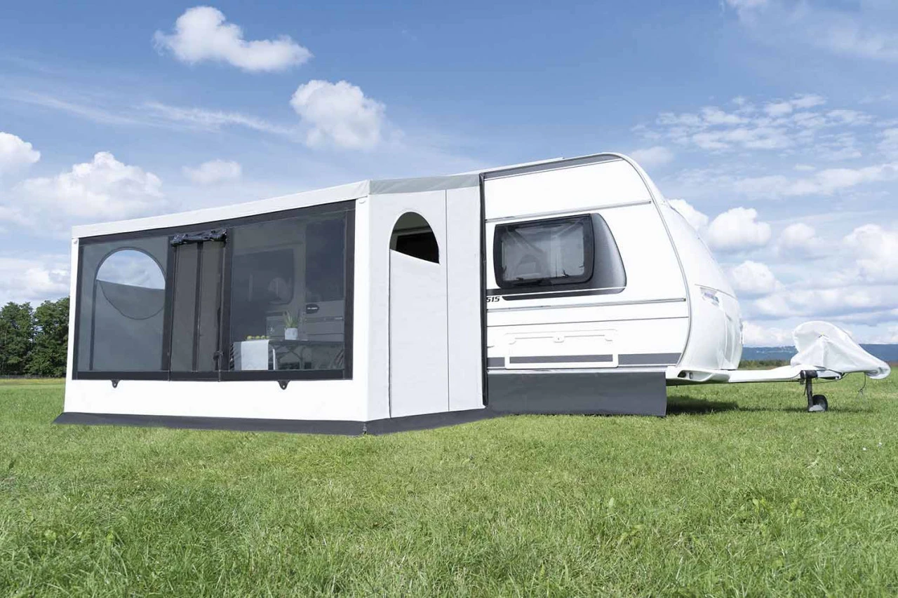 Wenn dich im Winter das Fernweh packt oder für dich die Campingsaison nie endet – Mit dem Wigo Inuit Storm Wohnwagenvorzelt kann wettertechnisch kommen, was will. Durch das PVC-Material ist das Vorzelt wind-, wetter- und wasserfest und du bist für die kalte Jahreszeit bestens ausgerüstet. Das Wigo Inuit Storm ist ein Teileinzugsvorzelt mit geringem Gewicht, das im Handumdrehen aufgebaut ist. Mit einer Breite von 250 cm und einer Tiefe von 200 cm schafft es einen kuscheligen Rückzugsort und auch Ski-Enthusiasten können hier problemlos ihre Ausrüstung verstauen. Die großen Panoramafenster laden dazu ein, im gemütlichen Ambiente die malerische Bergkulisse und das Schneetreiben zu beobachten.