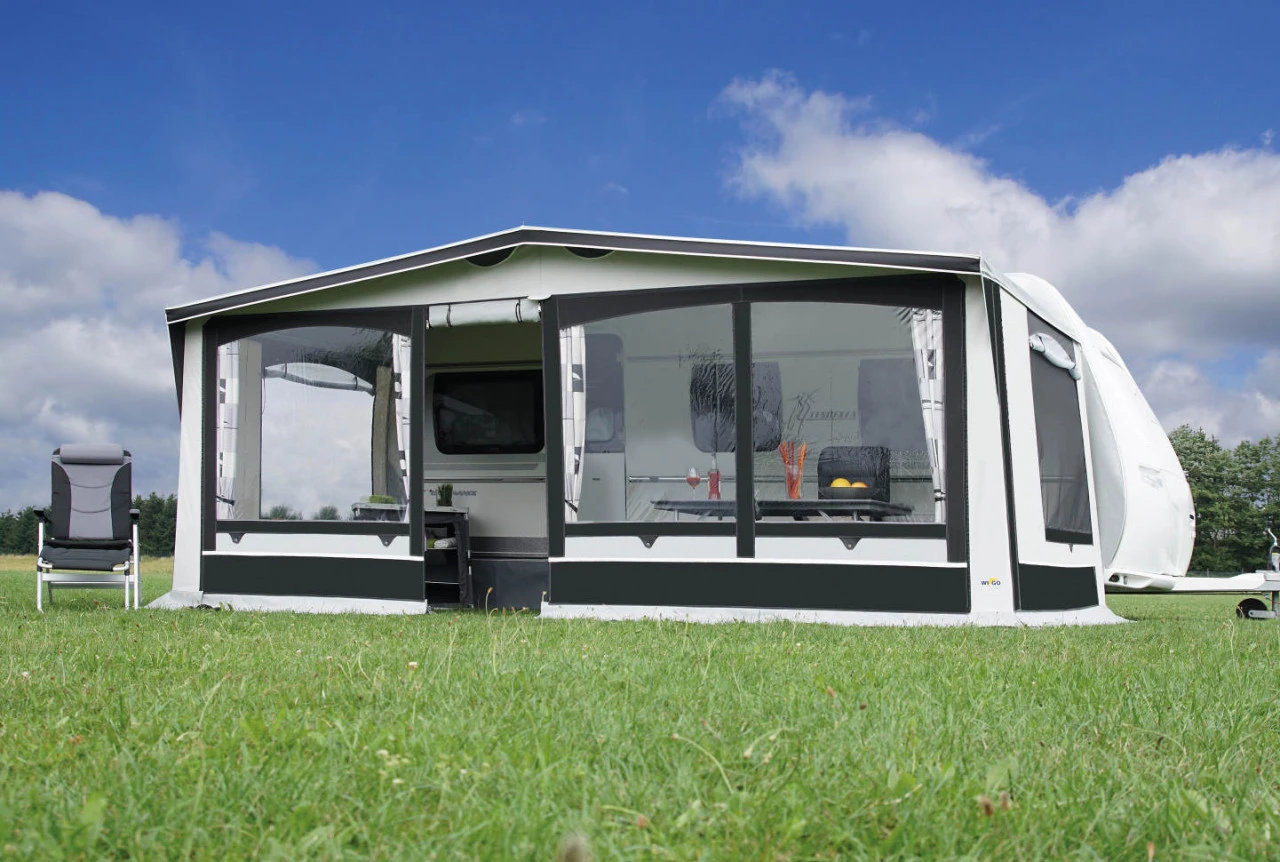 Das Wigo Traveller Edition Wohnwagenvorzelt ist ein absoluter Allrounder für deinen Campingurlaub. Das Vorzelt ist perfekt für jeden Campingeinsteiger, überzeugt aber auch bereits erfahrene Camper. Die Vorderwandhälften kannst du entweder komplett herausnehmen oder auch zu einer Veranda abklappen. So kannst du bei schönem Wetter im Freien verweilen und dein optimales Campinggefühl erleben. Ob Saison- oder Ganzjahrescamping, das Wigo Traveller Edition Wohnwagenvorzelt ist dein idealer Begleiter zu jeder Jahreszeit. Da das Vorzelt über die komplette Kederlänge deines Wohnwagens eingezogen wird, hast du viel Raum deinen Campingtraum zu leben.